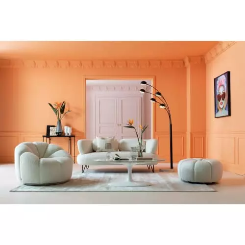Maisons Du Monde Lampadaires Lampadaire En Bois D’ailante Beige Et Abat-jour En Tissu Blanc H169