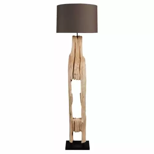 Ce lampadaire en bois naturel possède un pied que vous pouvez décorer grâce à de petites niches.
