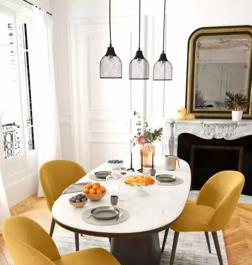 Le luminaire d’intérieur design dans la maison, c’est un vrai sujet que Potiron prend au sérieux. Graine de style que tout le monde voit en entrant, votre suspension à trois lampes est le reflet et de votre sens pratique, et de votre goût en matière de tendance. La praticité, parlons-en avec la suspension Villadoro et ses 3 abat-jour en métal. Cette dernière est idéale pour obtenir un éclairage général dans une grande pièce, avec une lumière de bonne qualité. Avec cette suspension triple, les repas en famille et entre amis sont agréables, personne ne se demande où est passée la soupière. Vous pouvez donc la privilégier au-dessus de la table à manger ou de l’îlot de votre cuisine américaine, elle y est parfaite.